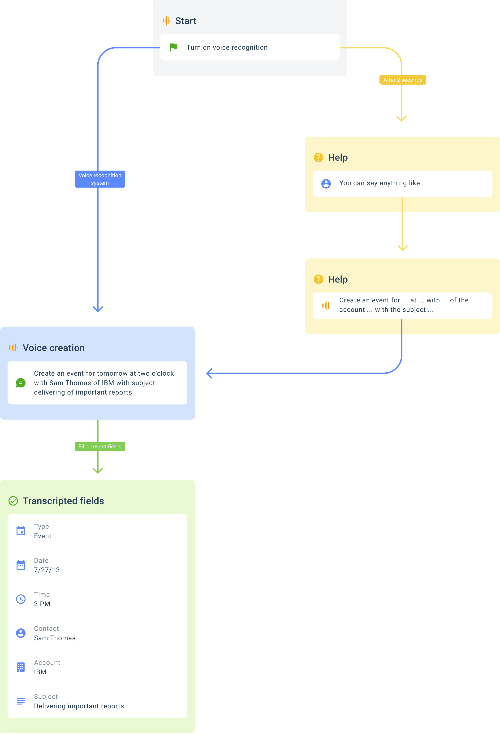 In testing, users naturally simplified their phrasing into a consistent structure: [type] + [date] + [time] + [who] + [topic]. That pattern informed our grammar and reduced retries. Two real-world constraints mattered most: ambient noise and duplicate names. We handled them with confidence thresholds that trigger clarifying questions and a disambiguation step that favors recent contacts and current location.