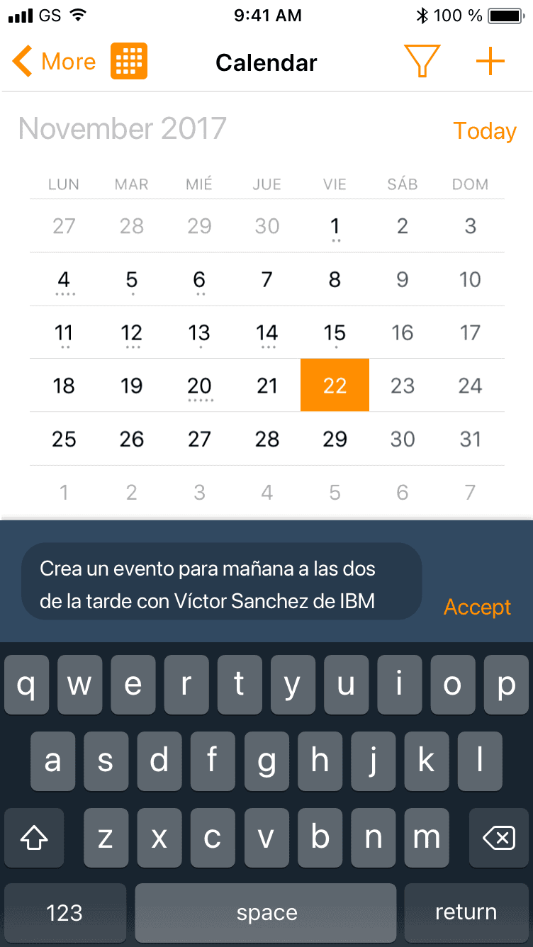 “Create a meeting for next week with Victor from IBM, with the title: Presentation of campaigns.